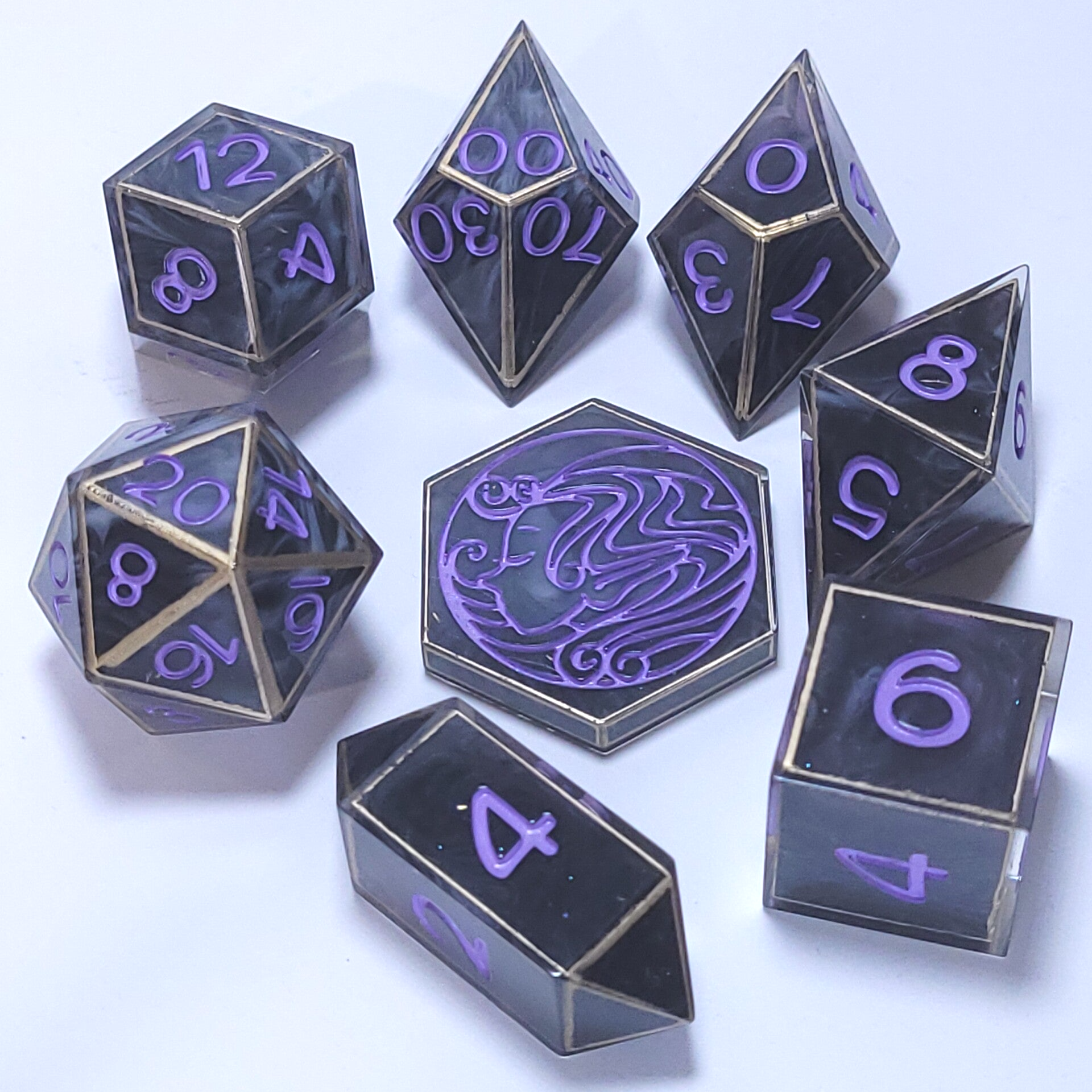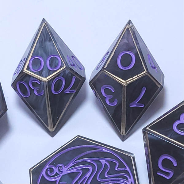 These are a dirty pour of a transparent purple and black and white. Very stripey! Inked in a lovely metallic purple.