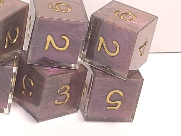 This set has a kind of brown base with a color shifting pigment that shifts from blue to purple.