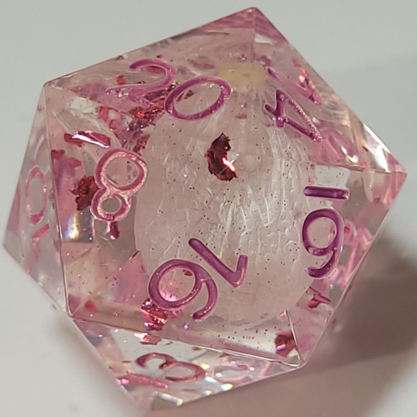 1 white hydrangea flower with pink foil inked in a colorshifting pink to gold.