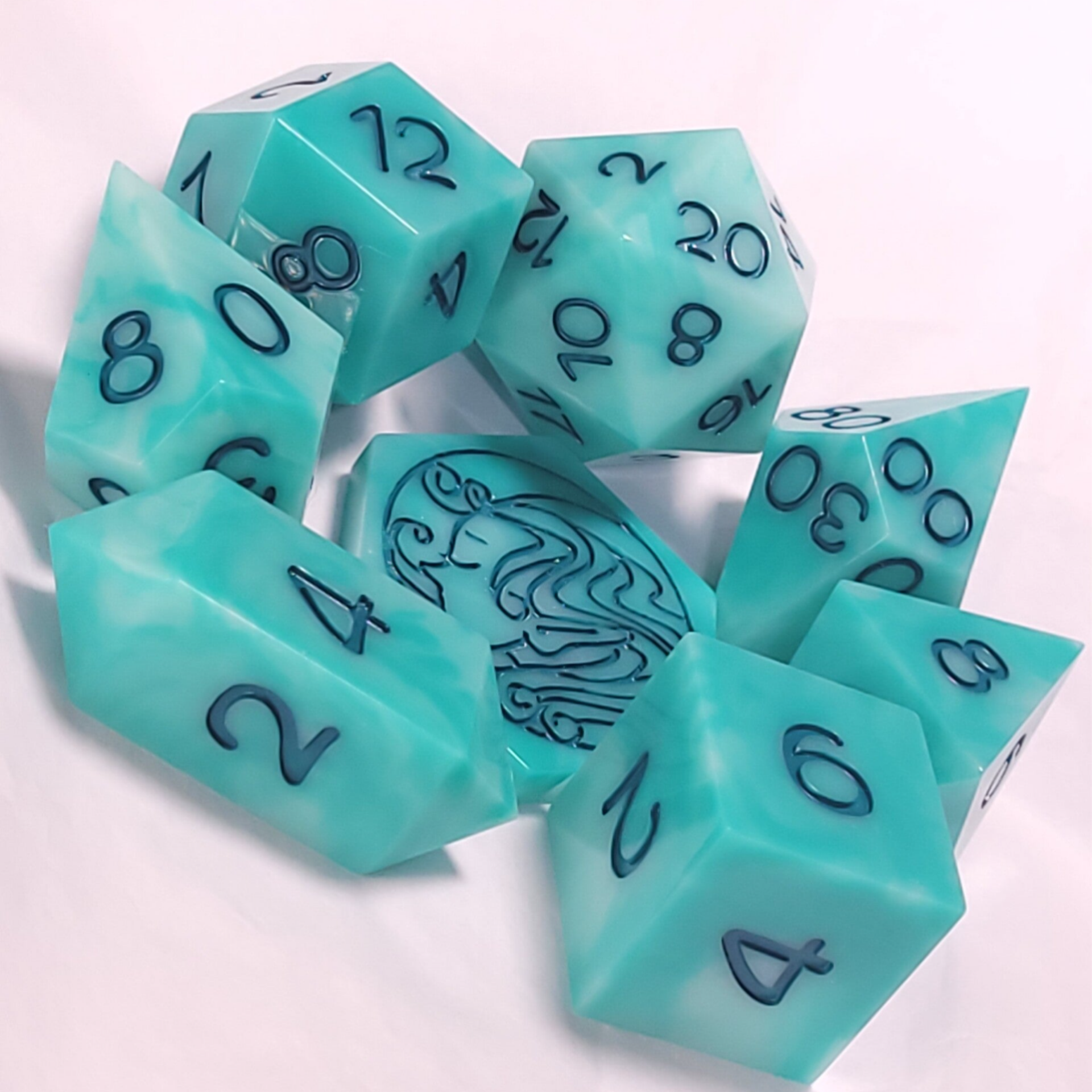 This set is a marbling of a soft teal and white. Inked in a dark teal.