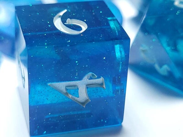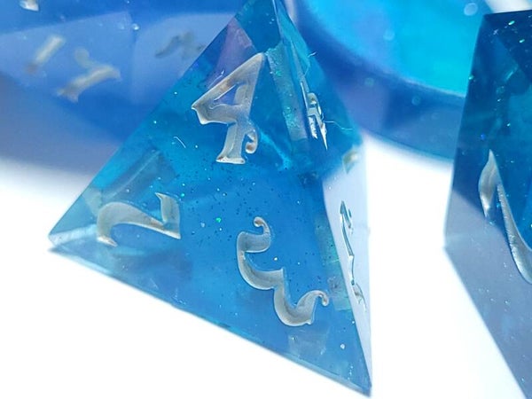 This is a glittery blue set with some swirls of purple as this is another excess resin set. The cloudy white swirls has an interference blue shimmer so this set is very shimmery and sparkly.