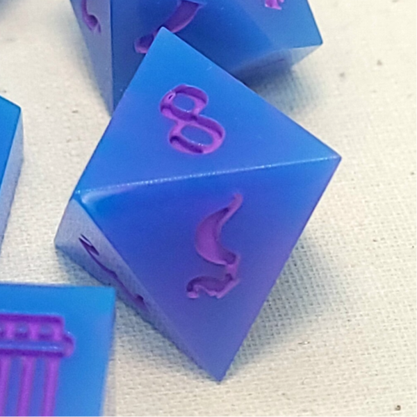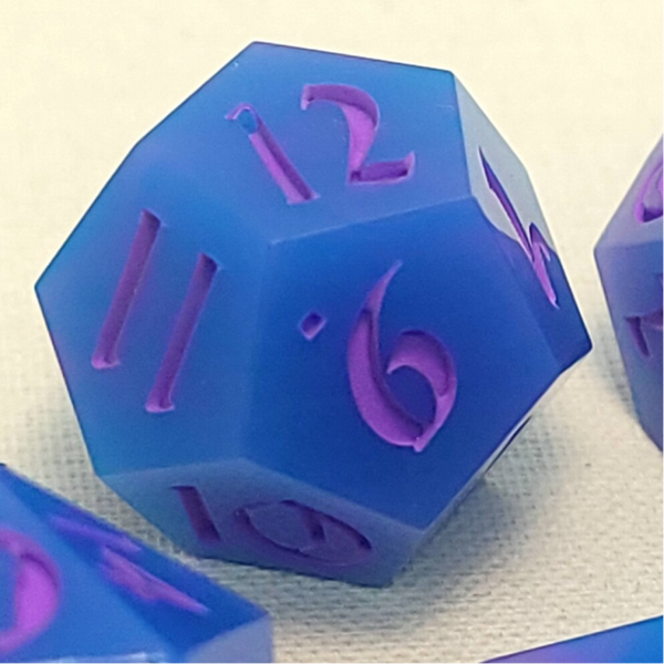 This is a swirl of blue and pink. Most of the pink has disapeared into the blue. Inked in a purple.