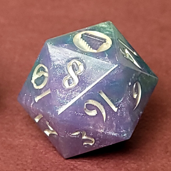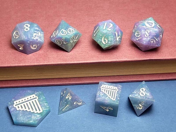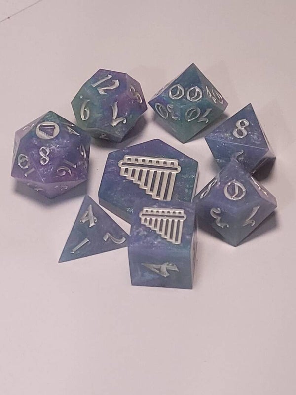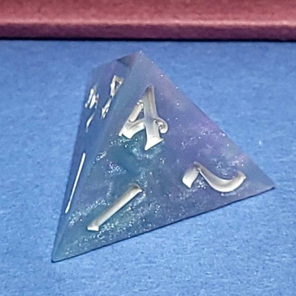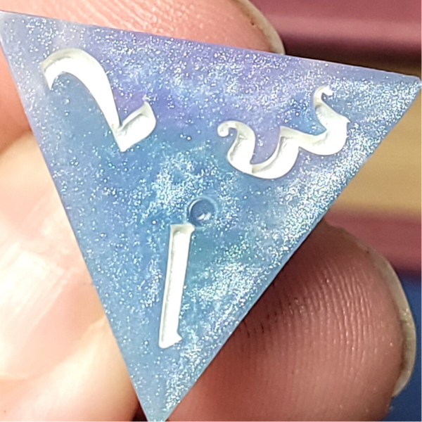 This set has a few filled bubbles on the one face of the d12, d4, and on the edge of the d6. These do not affect the rolls.