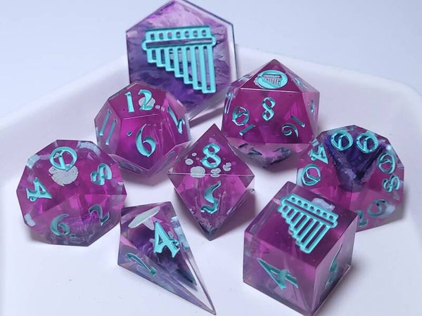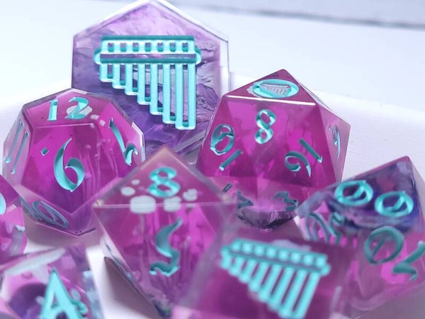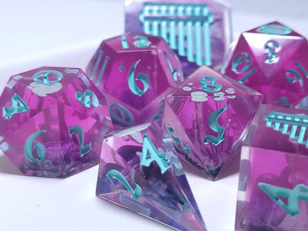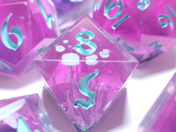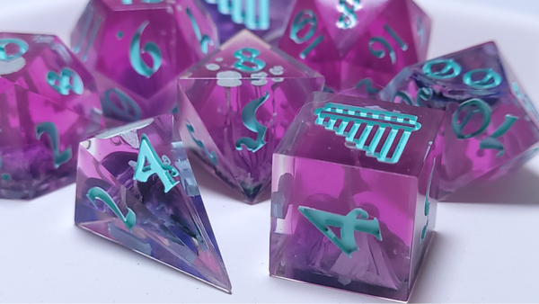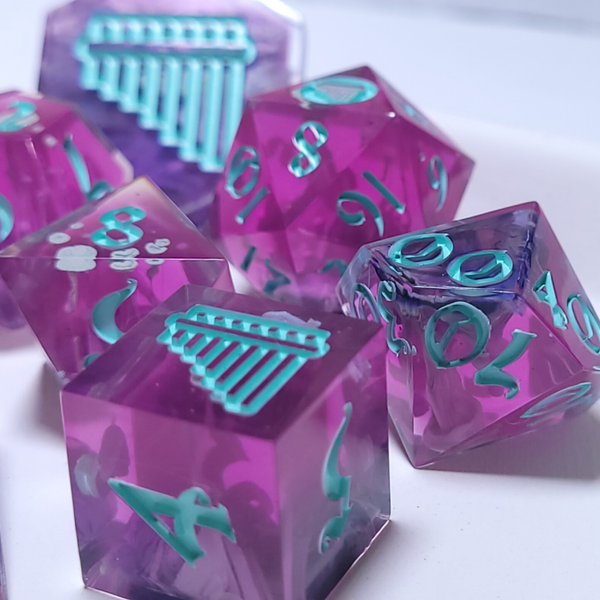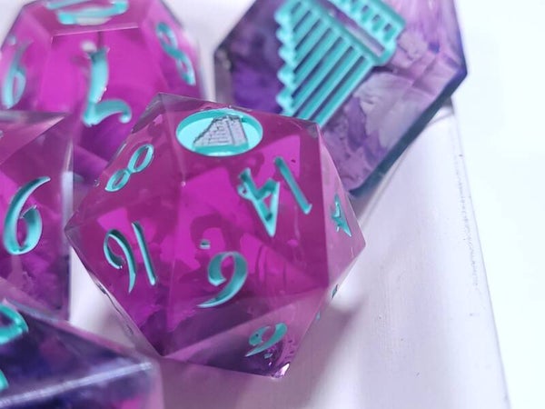 This set has a base of magenta with a navy petri dropped through it. Inked in pale teal.