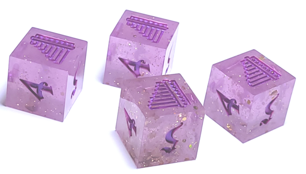 Pale pink resin with a champagne holo glitter mixed in. Inked in a pink/blue color shift.